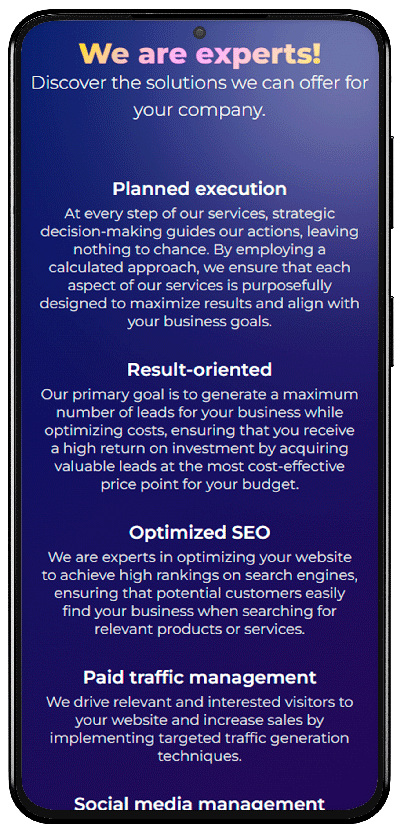 Essa página foi criada com intenção de resumir para os primeiros clientes da agência todo o trabalho que exercemos, de forma simples e clara. A sede da agência fica na cidade de Orlando/FL, seu principal foco são clientes americanos, por esse motivo toda sua comunicação é feita em inglês.
