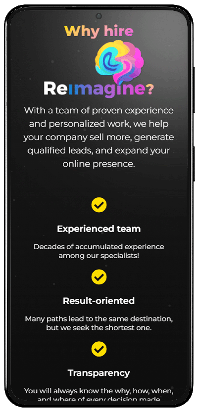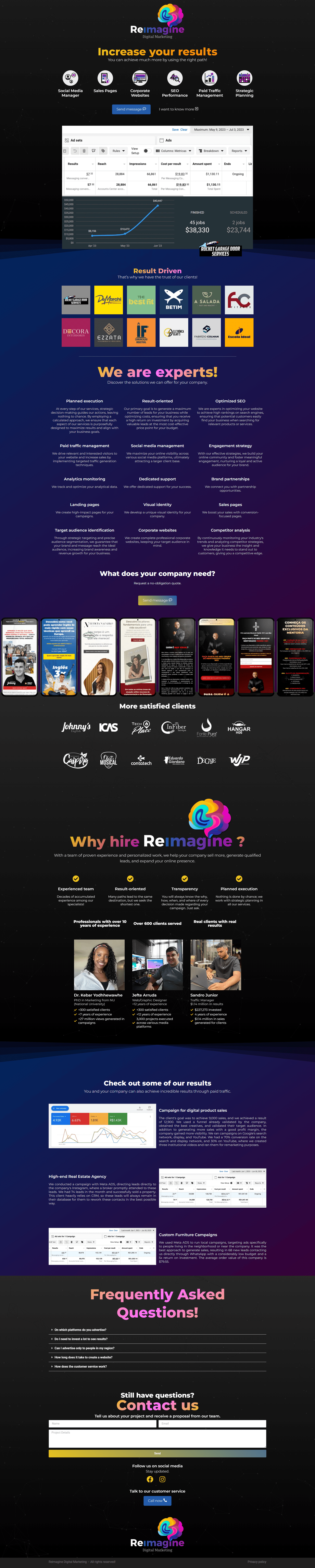 a agencia Reimagine Digital Marketing surgiu da união de três profissionais que foram unidos pelo destino ou pelo acaso, como você preferir. Cada um com sua especialidade agregando ao outro, após alguns projetos em conjunto decidiram formar uma equipe e trabalharem juntos para buscar o melhor resultado a seus clientes. Eu sou um desses 3 membros fundadores.