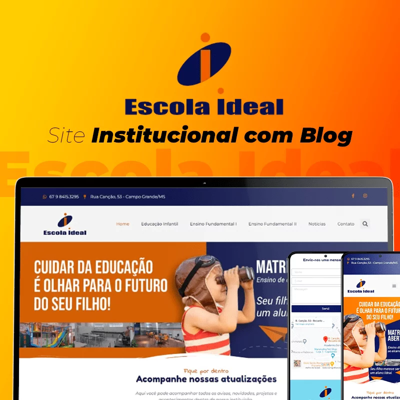 Escola ideal Criação de site institucional com blog de notícias. A Escola Ideal valoriza o desenvolvimento integral de seus estudantes, proporcionando um ambiente educacional adequado, além de contar com profissionais engajados e comprometidos com a qualidade da educação oferecida. SOBRE O PROJETO Com o intuito de demostrar a constante modernização do espaço junto com as […]