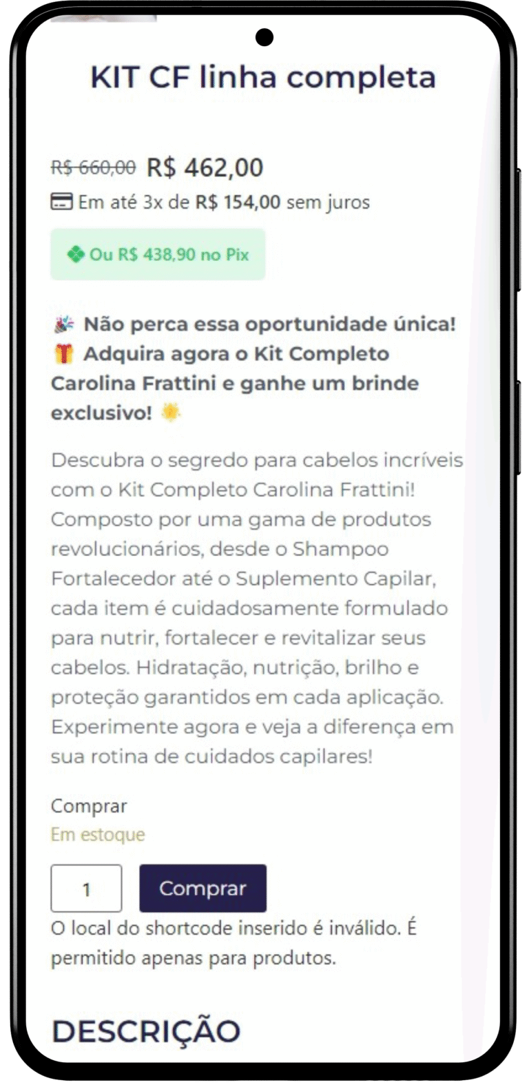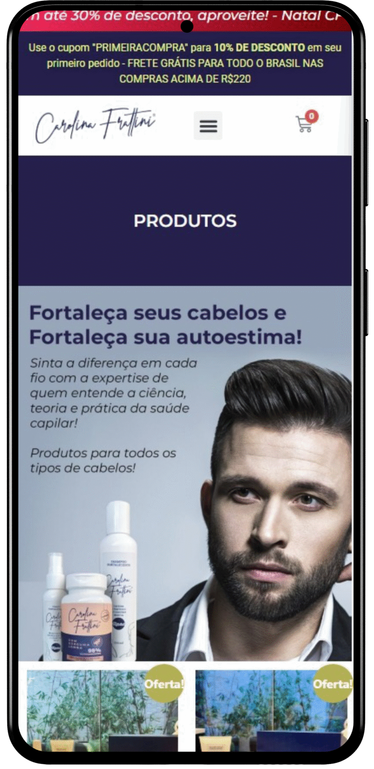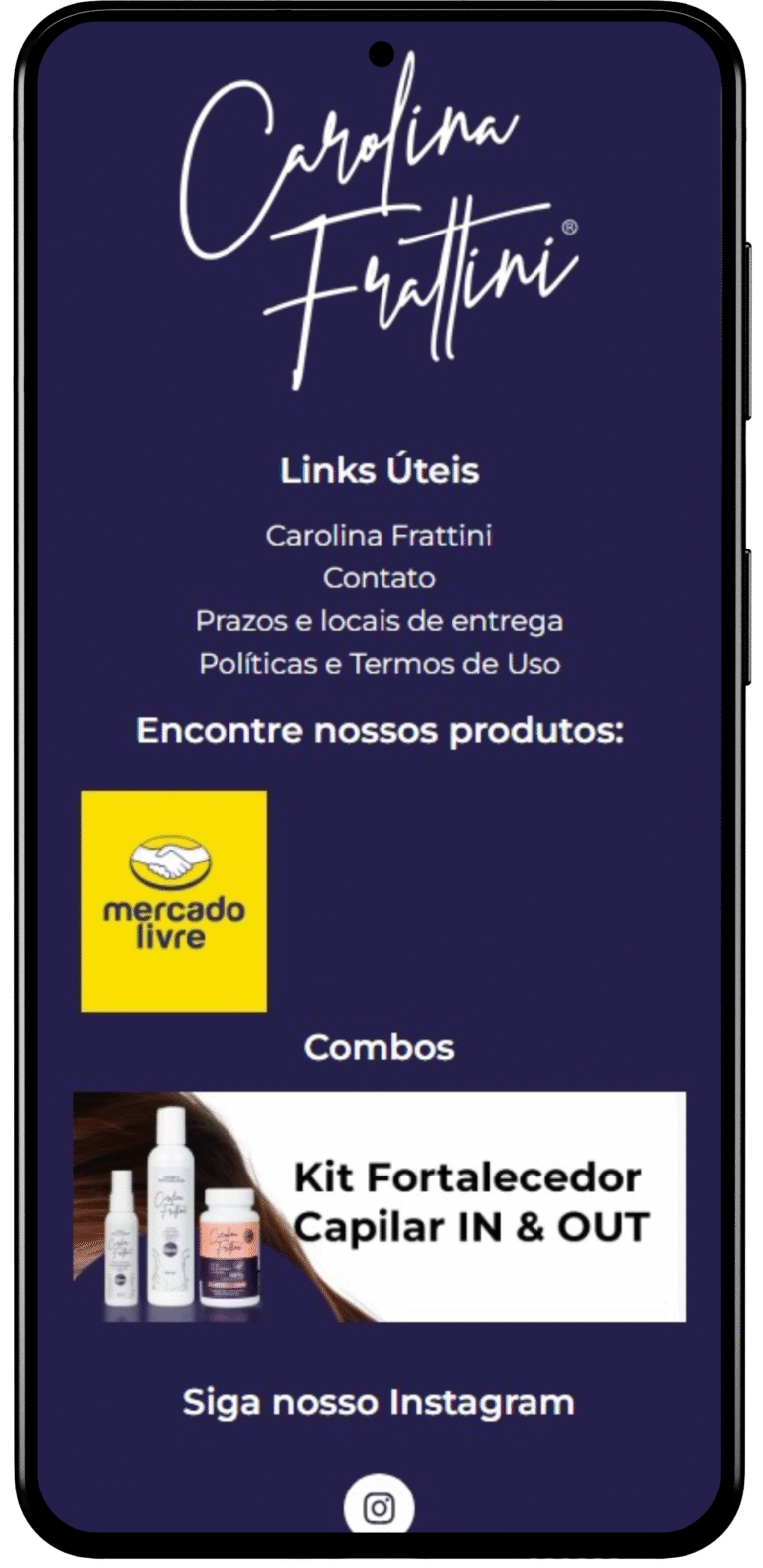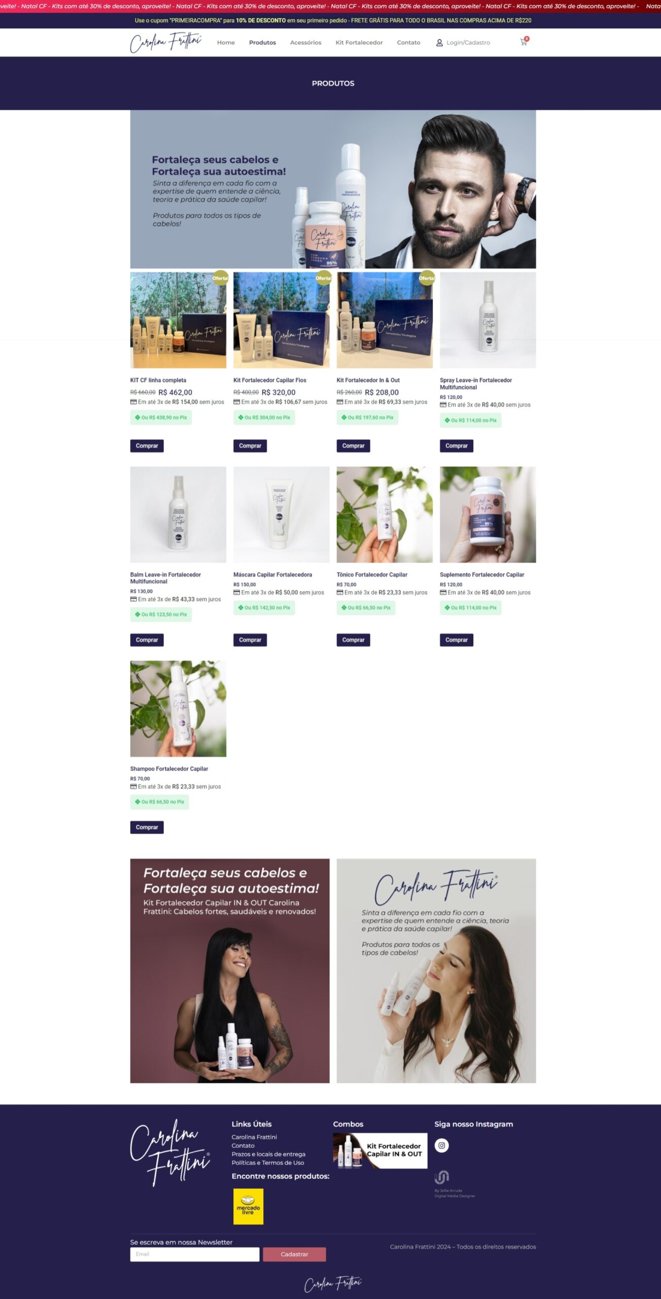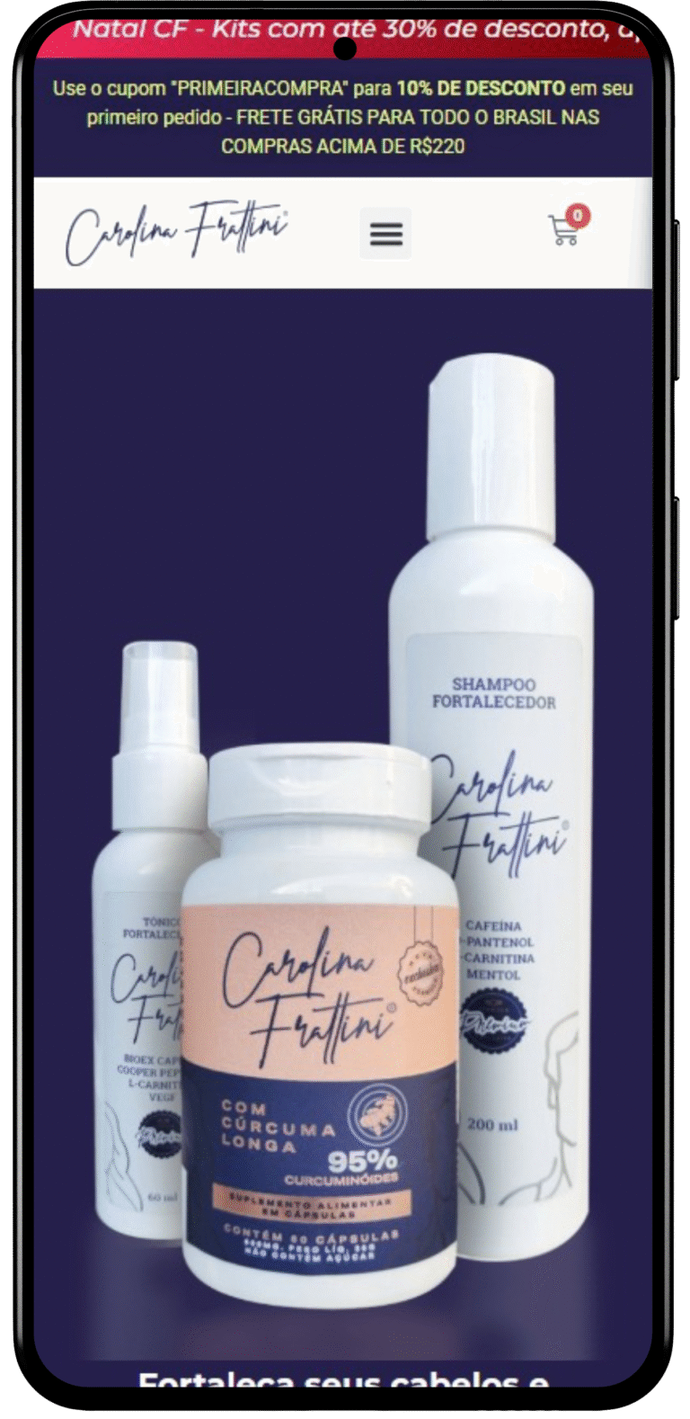 Movida pela paixão e comprometimento, Carolina Frattini decidiu ir além do consultório, desenvolvendo uma linha de produtos capilares que refletem seu entendimento científico, teórico e prático. Com a linha Fortalecedora In & Out, Carolina não apenas fortalece cabelos, mas também transforma vidas, proporcionando autoestima e confiança a milhares de clientes satisfeitos. Sua missão vai além dos produtos; é sobre fortalecer a saúde capilar e elevar a experiência pessoal de cada usuário.