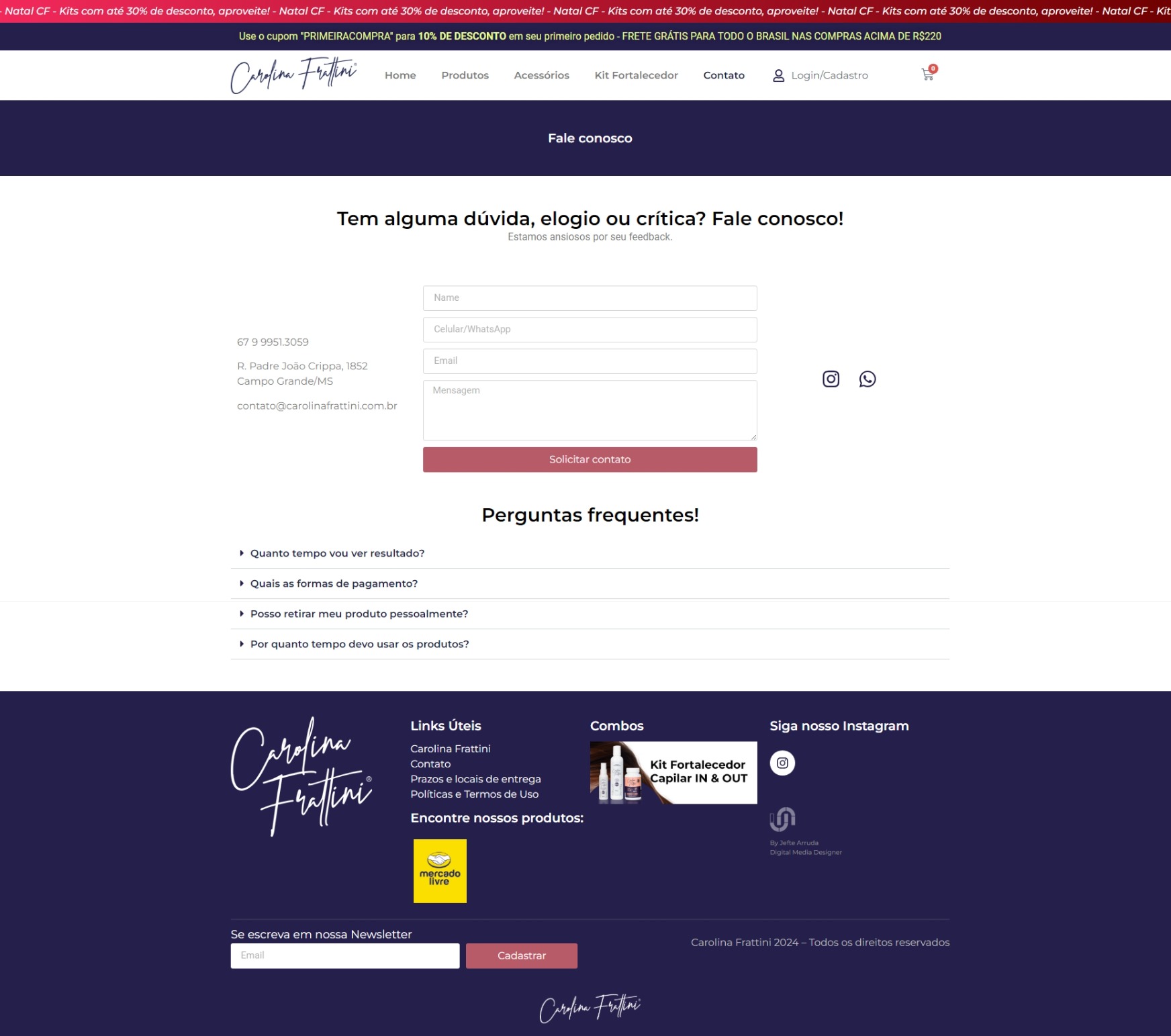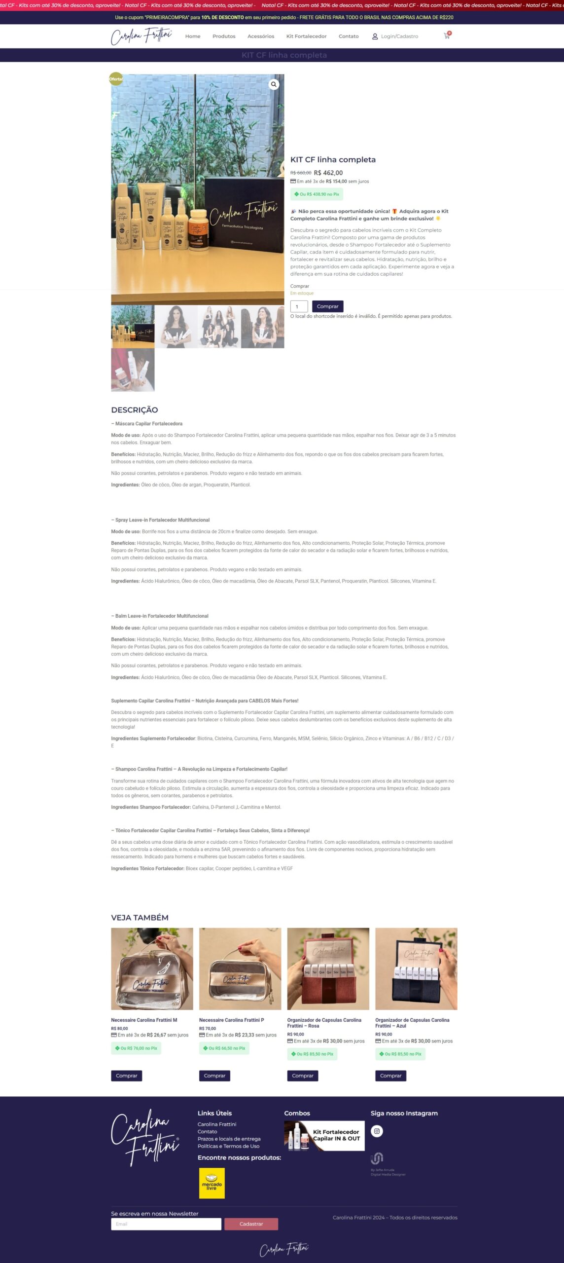 Primeiro e-commerce desenvolvido para Carolina Frattini para lançamento de seus produtos para venda nacional.