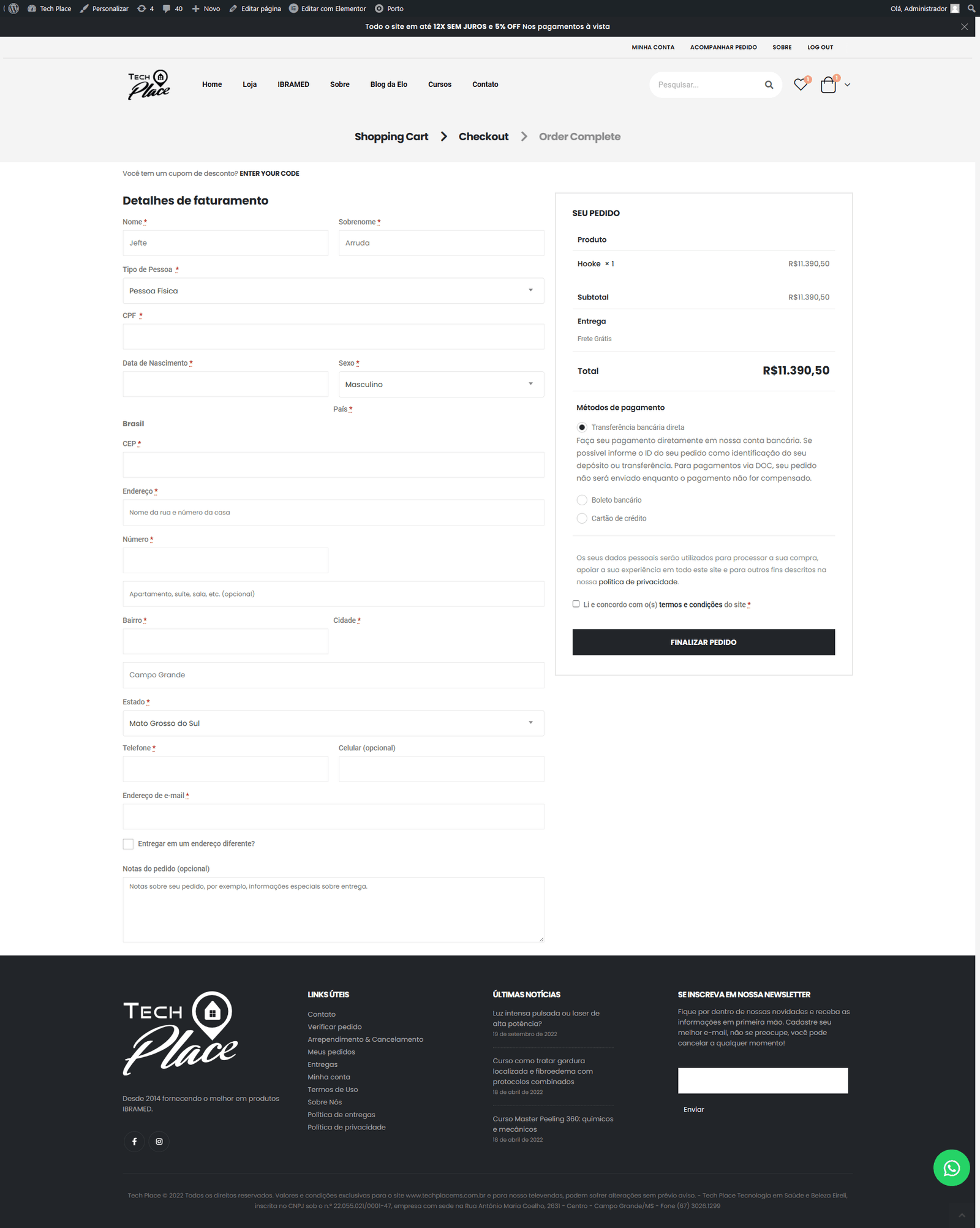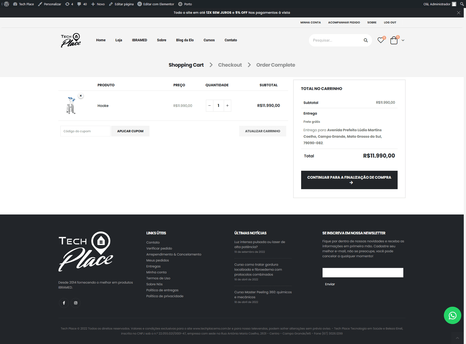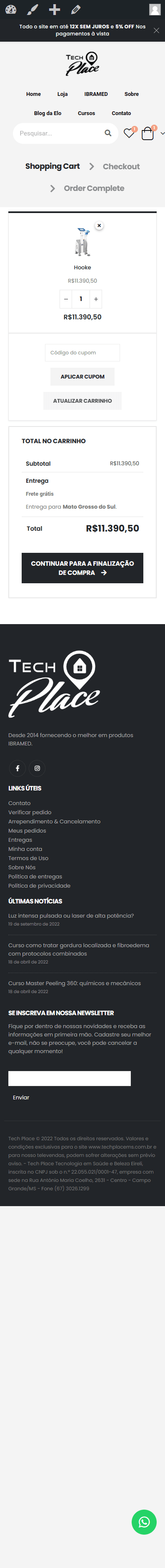 Este já é o segundo e-commerce desenvolvido para a Tech Place, essa nova atualizações trouxe aprimoramentos nas ferramentas de checkout, permitindo criar regras de campanha e precificação de produtos mais complexas assim como um grande upgrade no layout.