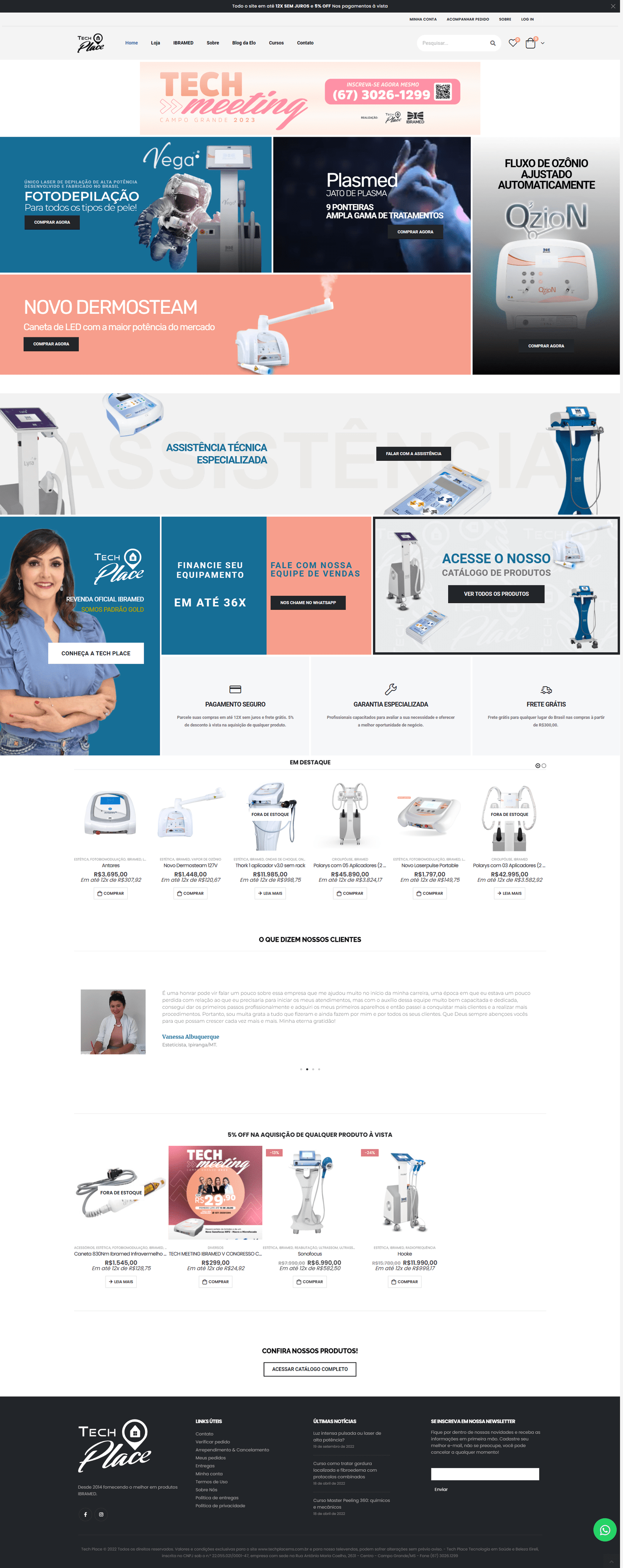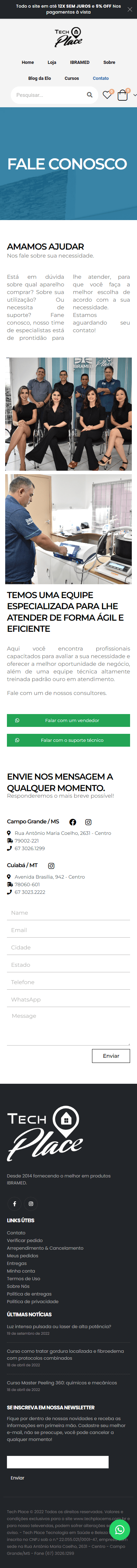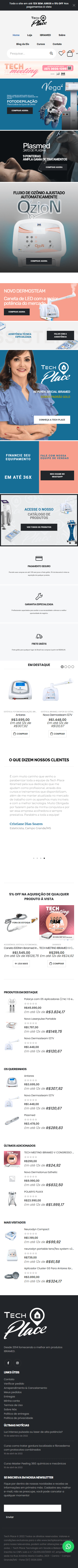 A Tech Place IBRAMED começou sua história no ano de 2014, sendo uma empresa Distribuidora Oficial dos Equipamentos IBRAMED com loja fisica nos estados de Mato Grosso do Sul e Mato Grosso, atendendo em todo o território nacional por venda a distância.
