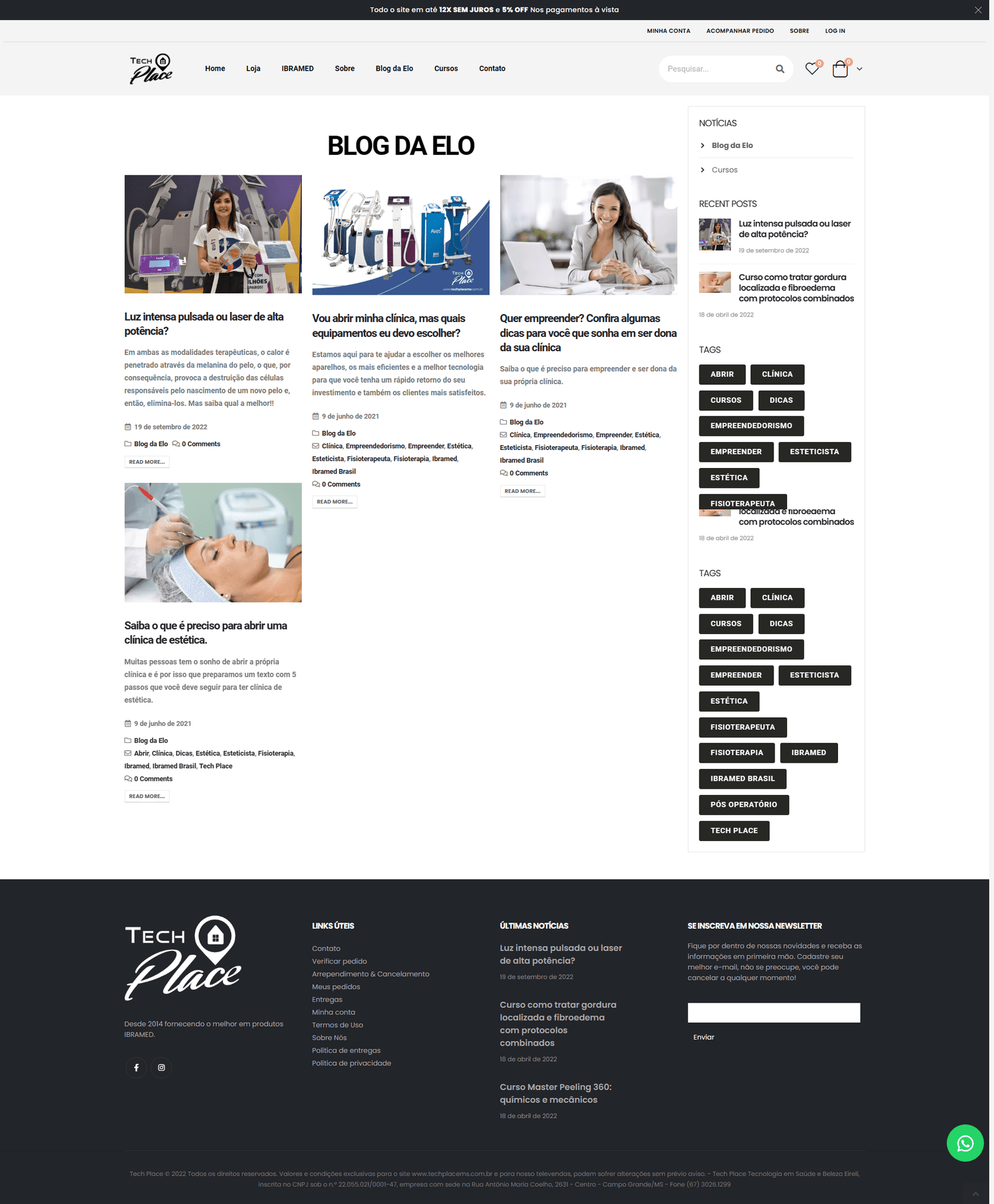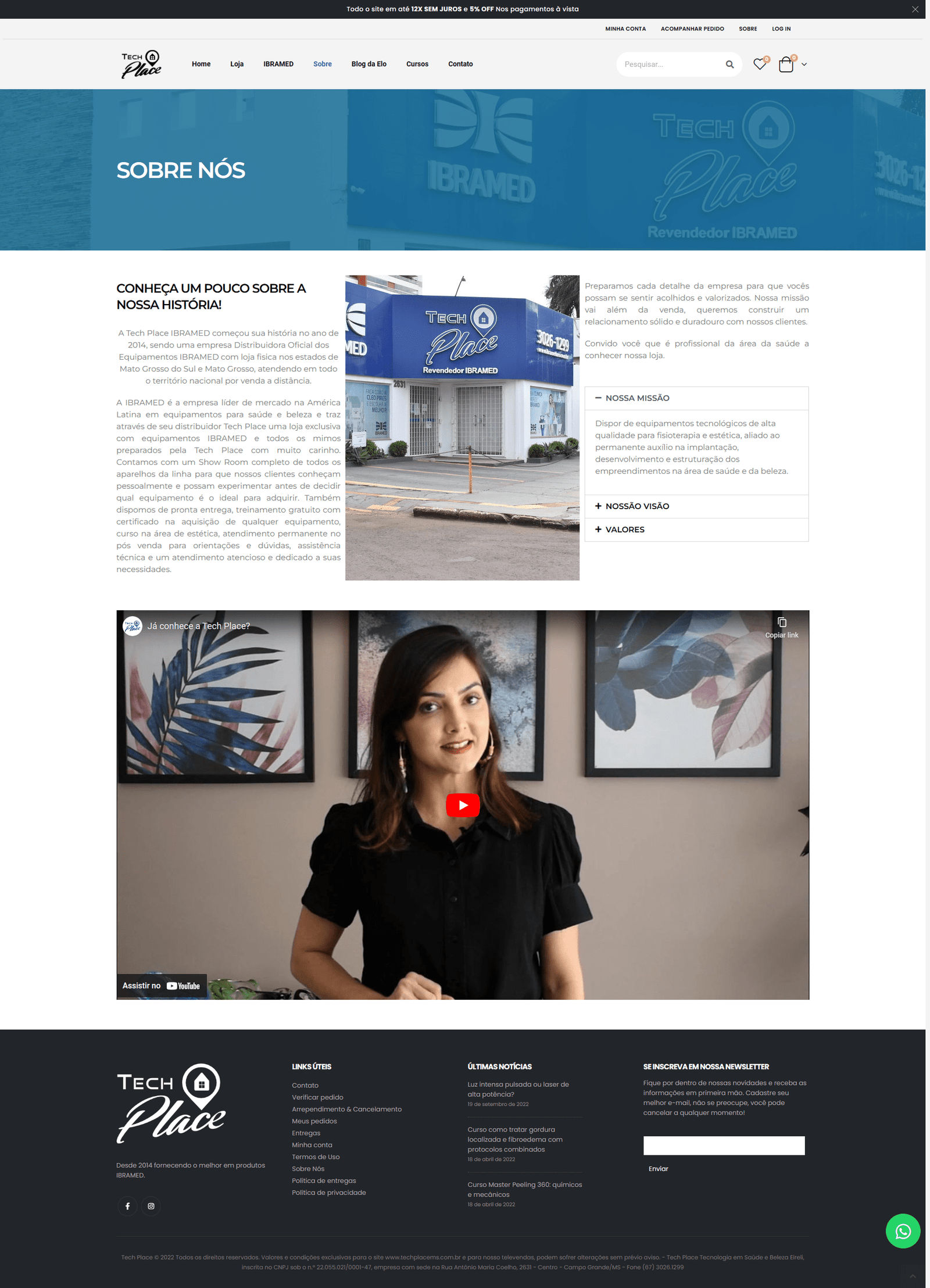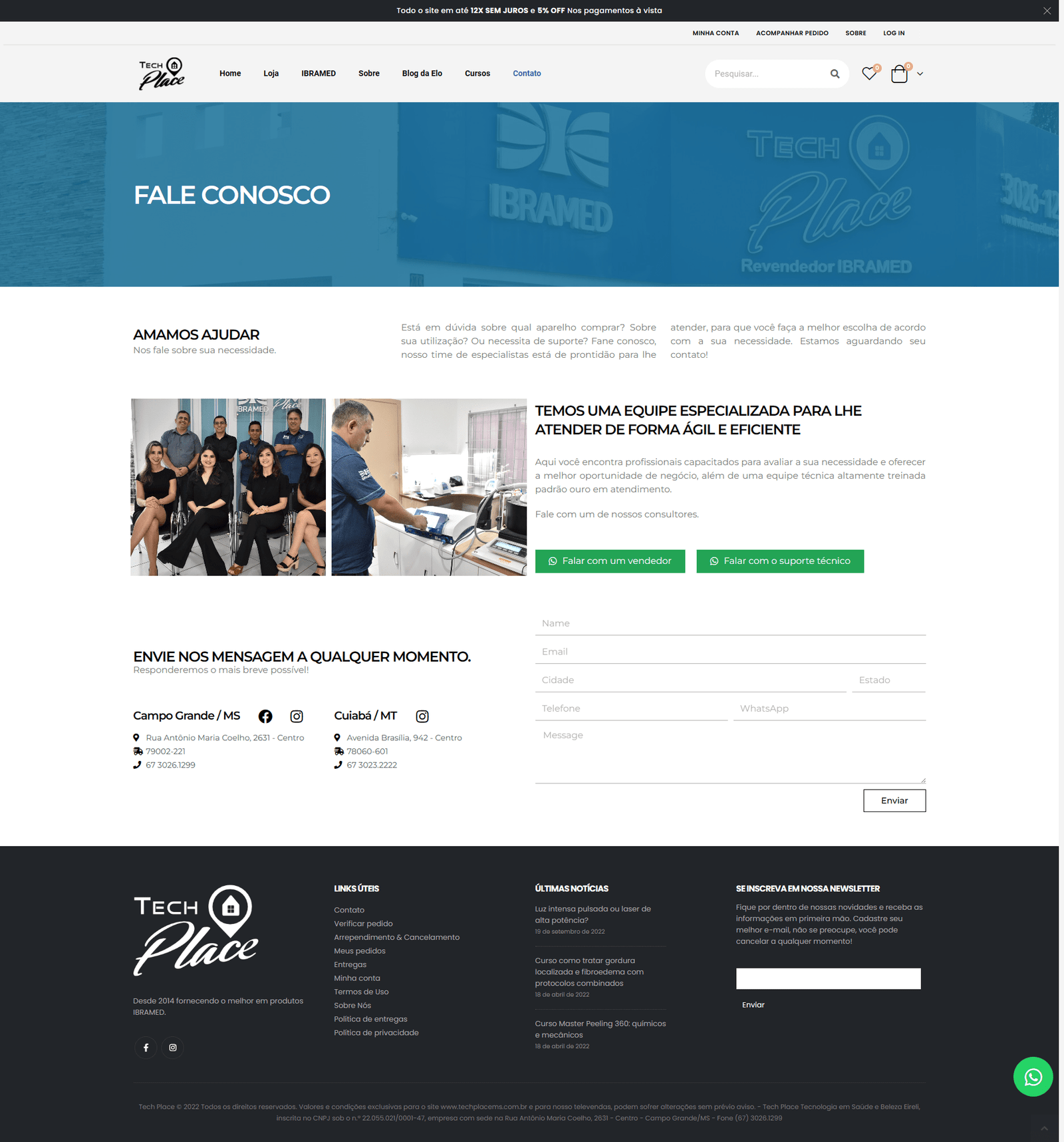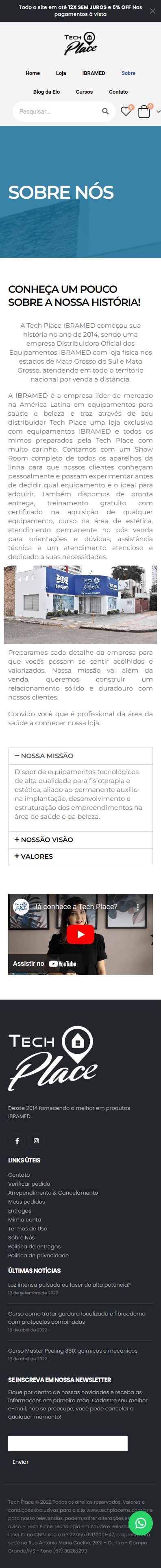 A Tech Place IBRAMED começou sua história no ano de 2014, sendo uma empresa Distribuidora Oficial dos Equipamentos IBRAMED com loja fisica nos estados de Mato Grosso do Sul e Mato Grosso, atendendo em todo o território nacional por venda a distância.