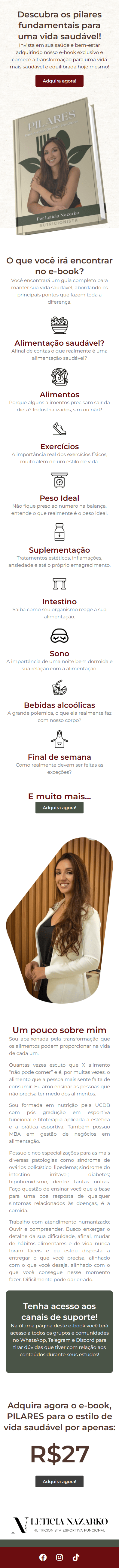 A cliente também escreveu seu próprio e-book no qual disponibiliza para venda, no qual foi criada uma página de vendas para ele juntamente com o site institucional.