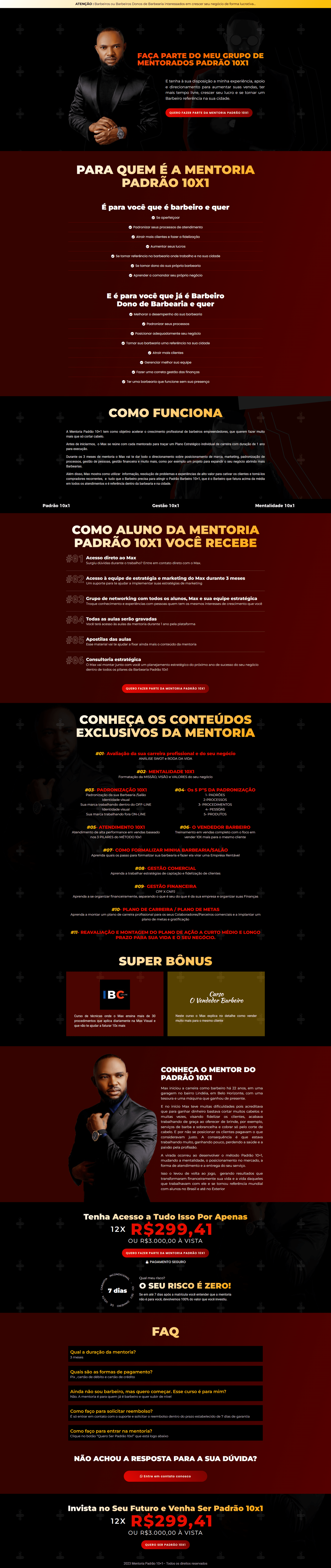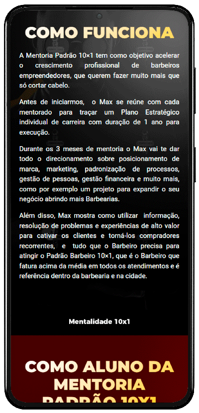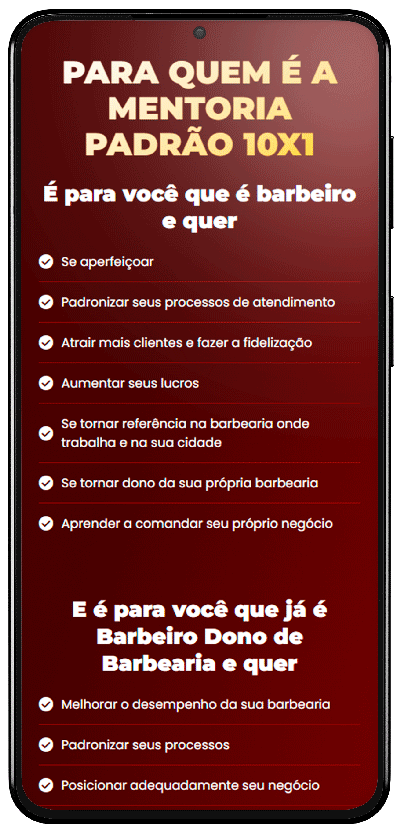 A Mentoria Padrão 10×1 tem como objetivo acelerar o crescimento profissional de barbeiros empreendedores, que querem fazer muito mais que só cortar cabelo.